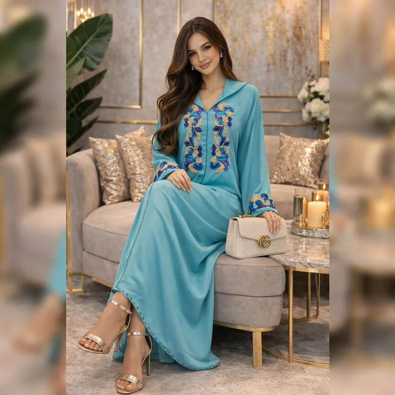 Caftan Broderie fait main Randa Tissu Crep sans ceinture